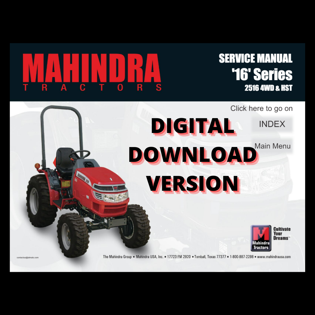 DIGITAL SERVICE MANUAL FOR MAHINDRA 2516 GEAR AND HST. ***DIGITAL DOWNLOAD*** SERVICE MANUAL 392 PAGES