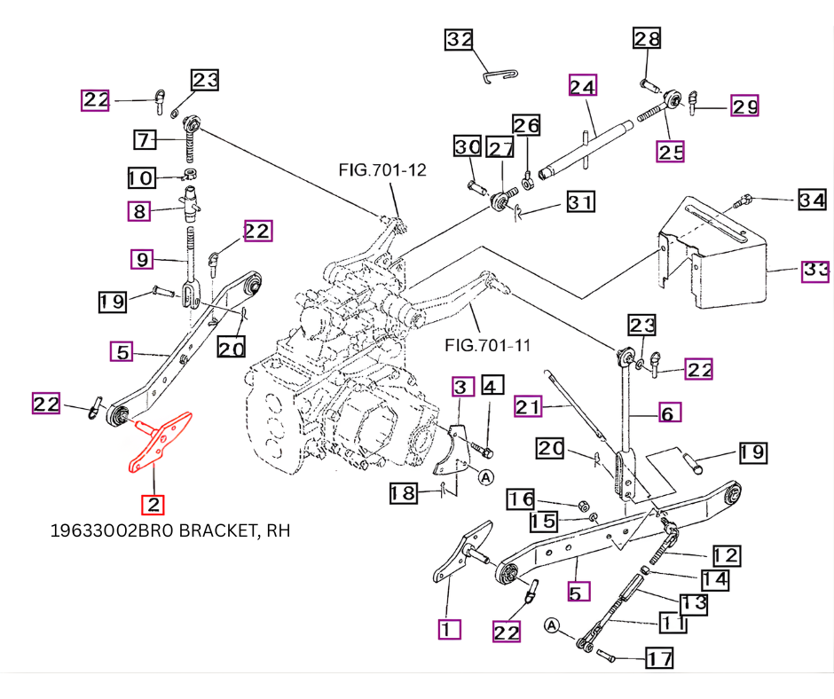 | 19633002BR0 | BRACKET, RH | 16 Series | 2216 HST | Chassis | 2216H-3PL-1-08 | 3 POINT LINKAGE |