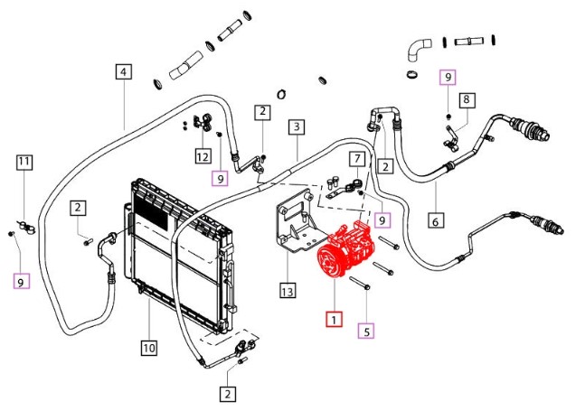 | 008012969U91 | COMPRESSOR Assembly | 7000 Series | 7095 4WD Cab | Engine | HVAC - ENGINE SIDE PART 1 | 1 |