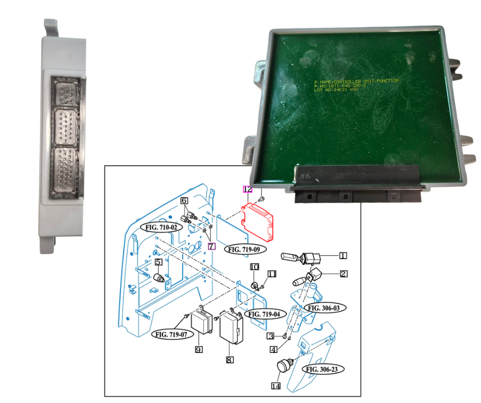 | 18716462900 Replaces 19026462906 | CONTROLLER UNIT FUNCTION | mForce105XL Series | mForce105XL-P | Electricals & Harness | M105XL-P_FIG 803 | ELECTRIC SYSTEM (2) |