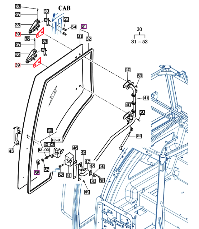 DOOR HINGE GASKET FOR 9110, 9125, MFORCE 100 & MFORCE 105 MAHINDRA TRACTOR (19027672060) - ITEM #39