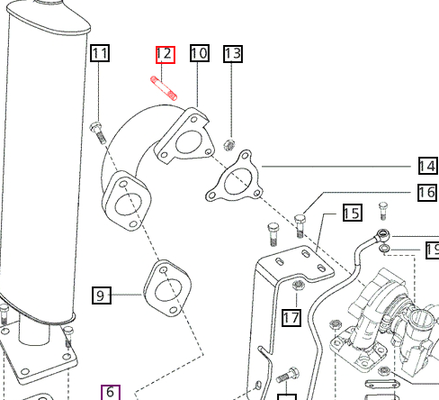 006002649F1 STUD Exhaust Manifold 6000 Series 6075 4WD CABIN Engine 6075 4WD CABIN - FROM 2019_FIG 103 EXHAUST SYSTEM 6 2