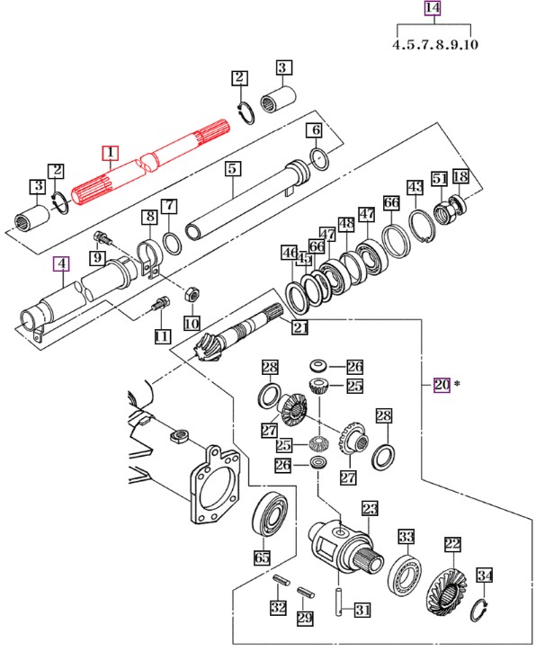 | 16744310010 | SHAFT 4510 | 10 Series | 4510 Cabin T2 | Chassis | FRONT DIFFERENTIAL GEARS & SHAFT |