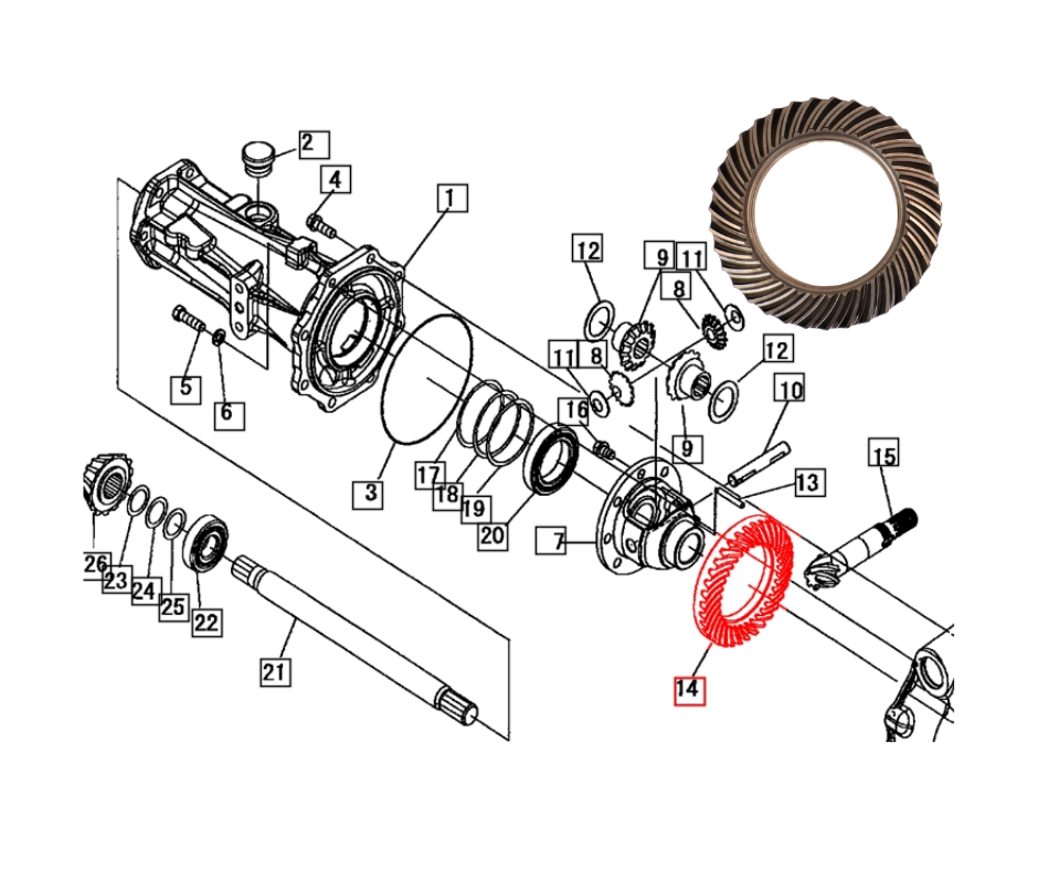 | 19562122000 | GEAR, Spiral | 16 Series | 3316 Gear | Chassis | 3316G-FA3-1-08 | FRONT AXLE (3/5) |