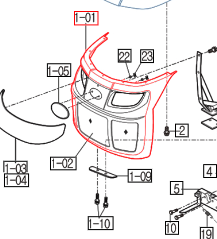 | 12416012010MR | COVER, Front Grille | 10 Series | 5010 HST Cabin | Chassis | 5010-HST-BONNE-1-11 | BONNET |