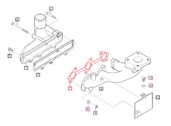 GASKET FOR EXHAUST MANIFOLD ON EMAX22 & EMAX25 MAHINDRA TRACTOR (E570012362) - ITEM #7