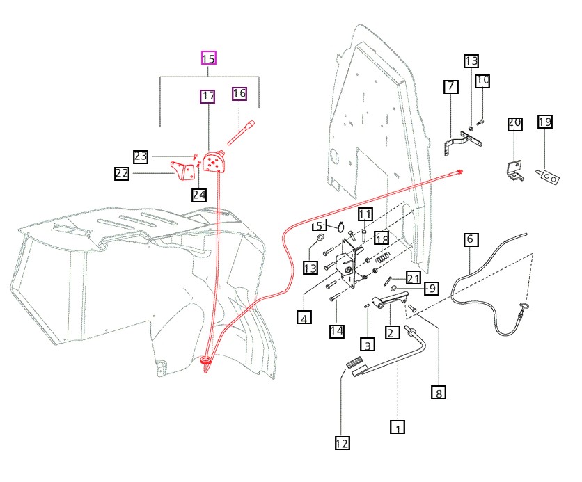 HAND GAS MECHANISM ASSEMBLY FOR MAHINDRA MODELS 7060, MPOWER 75, 8560, AND MPOWER 85.