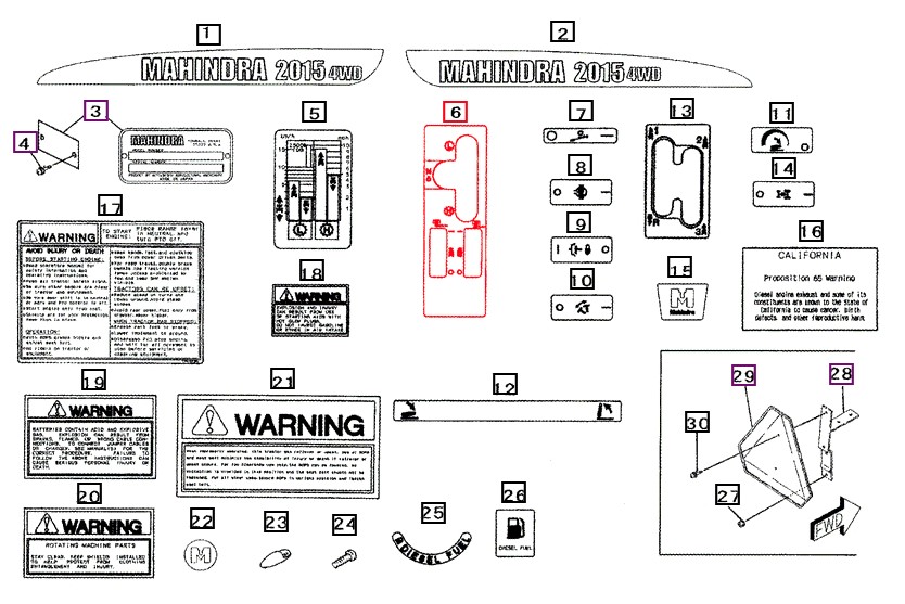 HI/LOW RANGE DECAL FOR 2015 & 2216 MAHINDRA TRACTOR (19632715000) - ITEM #6