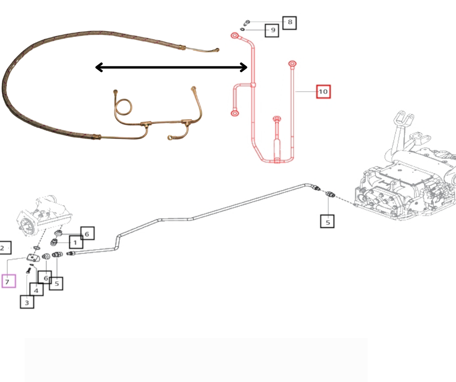 HYDRAULIC ROCKSHAFT LUBRICATING LINE FOR 4530 4WD, 4025 4WD, 4540 4WD, 4550 2WD & 4WD, 5545 4WD, MAHINDRA MODELS (E007205688C2) ALT PART NUMBERS 007202320C1,E007202320C1,E007202731C11,E007205688C1,E007205688C2