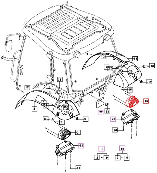 RIGHT HAND SIDE TAIL LAMP ASSEMBLY FOR MAHINDRA TRACTOR (ITEM #15) FITS MODELS: 9110, 9125, & MFORCE 105