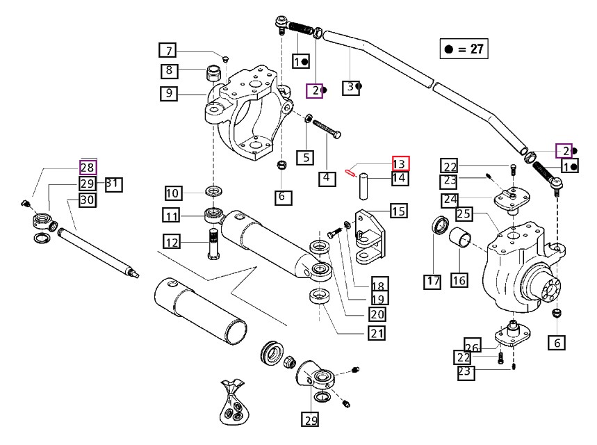 ROLL PIN (D8X36) FOR FRONT AXLE ON (4WD) MAHINDRA TRACTOR (006500372C1) - ITEM #13