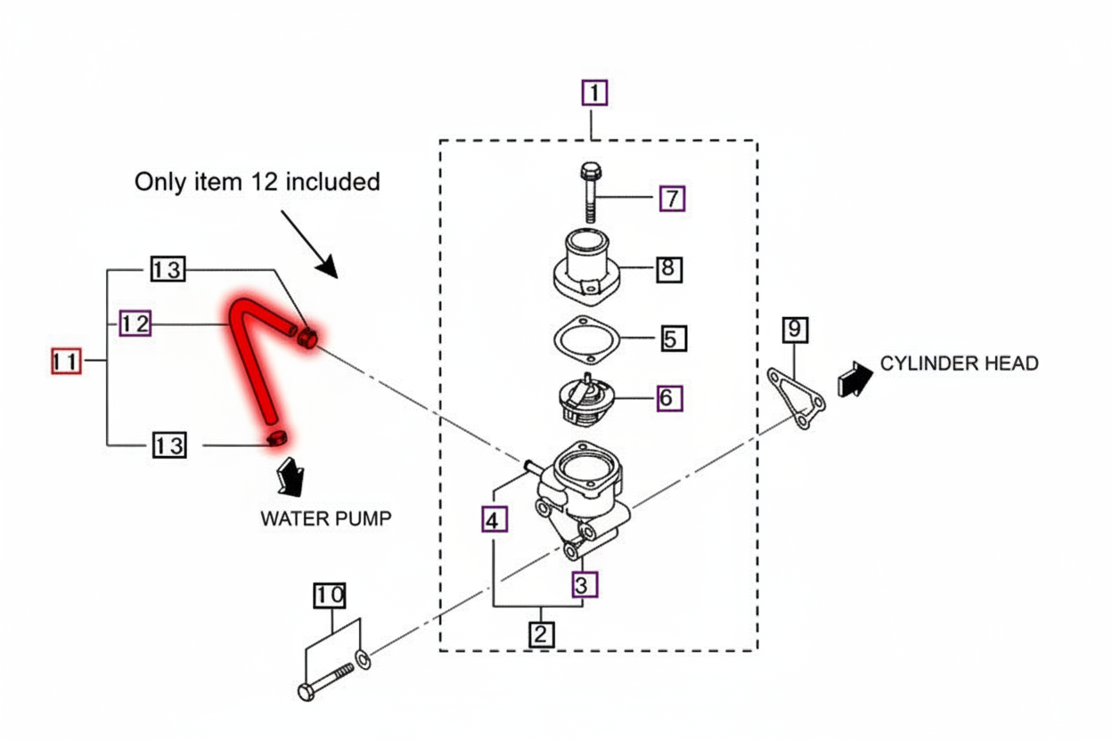 | 31A46-05010 / 31A4605010 | HOSE Assy | 16 Series | 2216 HST | Engine | 2216H-CS-1-08 | COOLING SYSTEM |