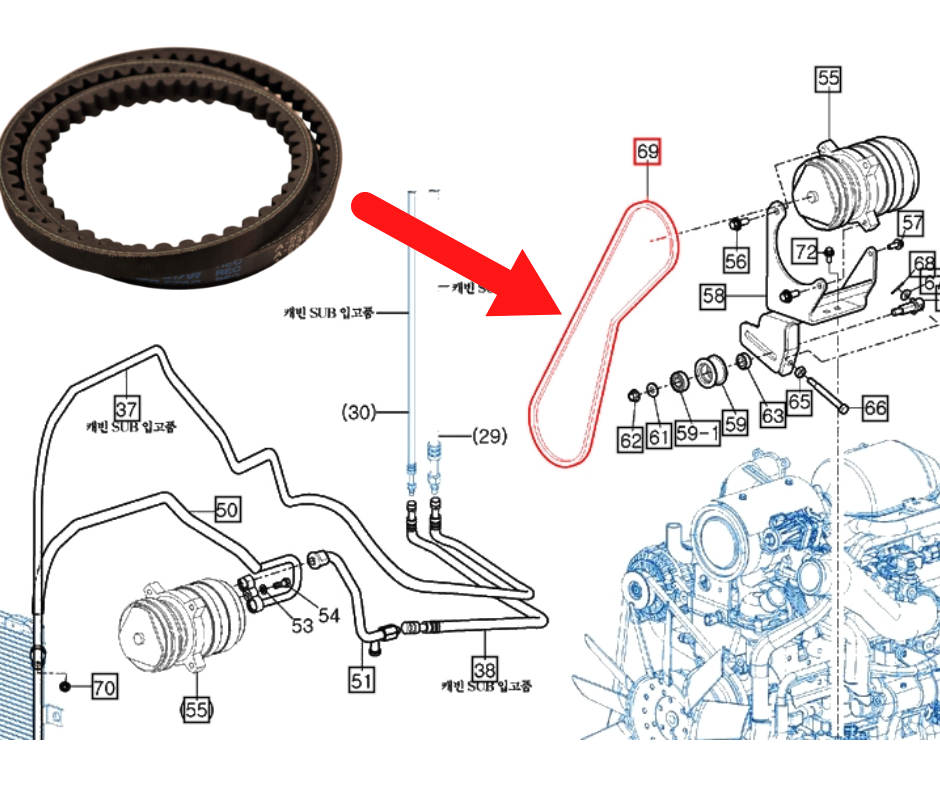 V-BELT , Rec A-54 | 2600 series | 2660 PST CABIN | Sheet Metal & Rops | 2660 PST CABIN 2020_FIG 715 | HEATER & AIR-CON PART 2 |